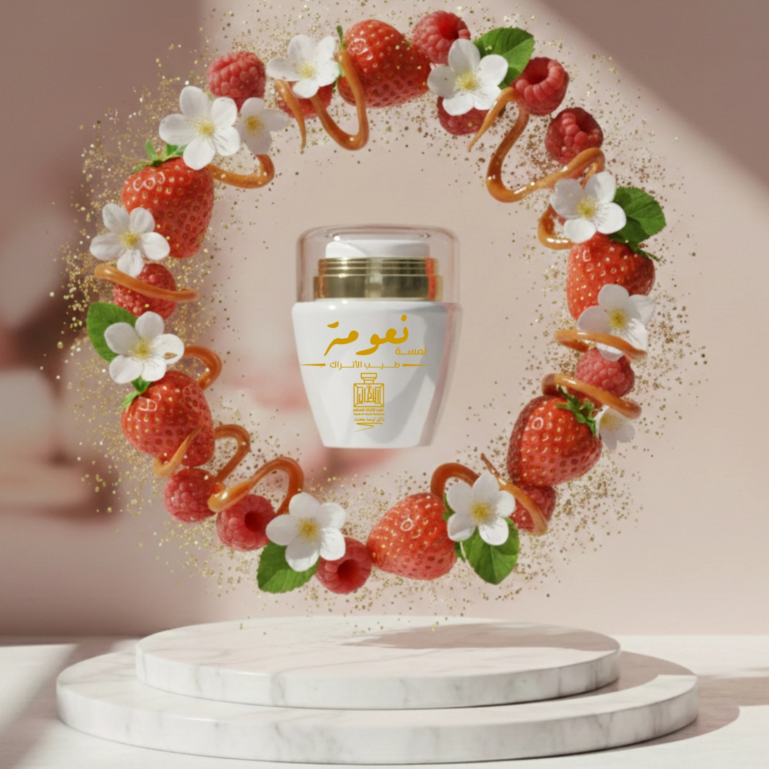 تأتي لمسة نعومة كعناق رقيق للحواس؛ حيث تفتتح يومك بمزيج مبهج من الفراولة والتوت الأحمر مع لمحة سكرية فواكهية تمنحك شعوراً فورياً بالسعادة. وفي قلب هذه اللمسة، يتجلى مزيج ناعم من الياسمين والزهور البيضاء مع الكراميل وروح بودرية تمنحك إحساس النظافة والترف.